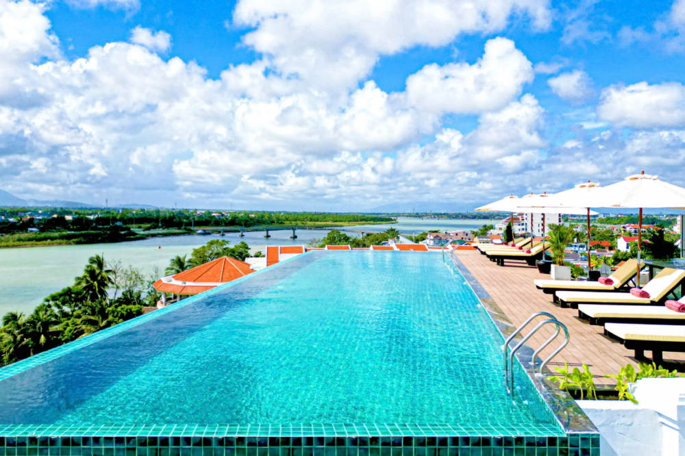 Guests can indulge in a wide selection of Asian and European cuisine at restaurants such as Thu Bon, Bel & Terrace, or enjoy local specialties in the rustic setting of Quang Restaurant. The 550-square-meter outdoor infinity pool—the largest in Hoi An—is a standout feature. Additionally, the Sky Pool offers a rooftop infinity experience with panoramic 360-degree views of the Thu Bon River and the ancient town.