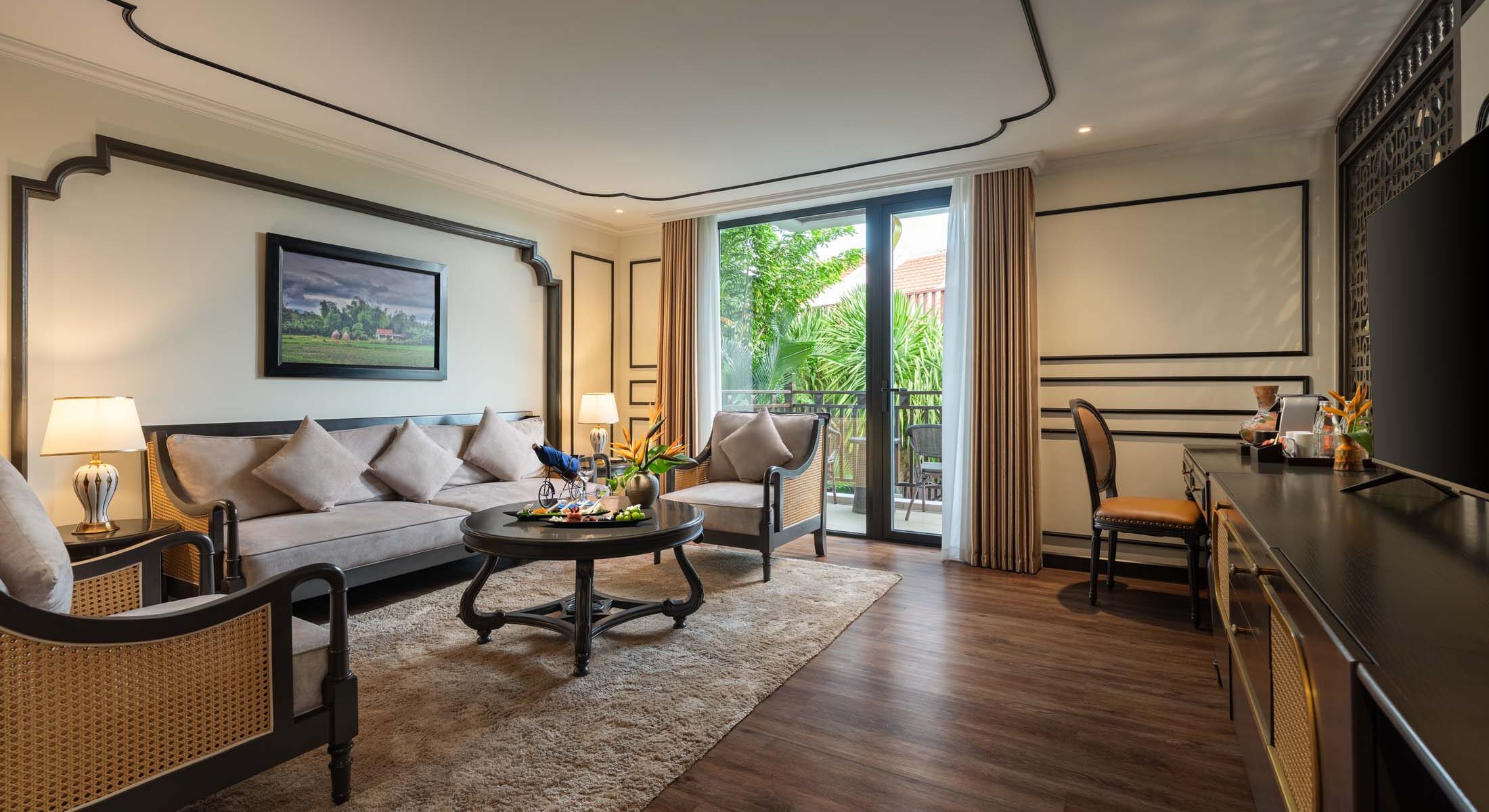Refinment of a scantuary, the Marina Suite celebrate Hoi An spirits. Premium craftsmanship that defines the elusiveness, Marina Suite craves high-end living space with floor-to-ceiling window and private balconies with a seperate living room, a plush King-size bed and ensuite bathroom with walk-in rain showers and bathtubs. All with a shining spectacular view of the infinity pool and spectacular greenery landscape.