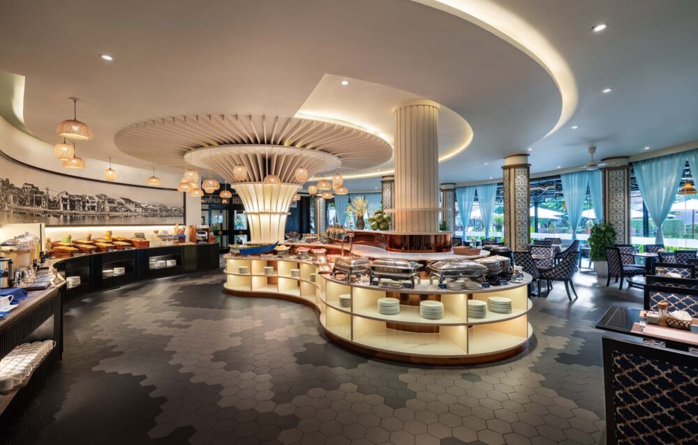 Lấy cảm hứng từ sự yên bình của dòng sông Thu Bồn, Nhà hàng Thu Bồn mang đến không gian ấm cúng và tinh tế. Chiêm ngưỡng khung cảnh sông nước qua những ô cửa kính lớn khi thưởng thức bữa ăn, hoặc chọn ngồi ngoài trời giữa khu vườn xanh mát. Nhà hàng phục vụ ẩm thực quốc tế kết hợp cùng các món đặc sản Việt Nam, đưa thực khách vào hành trình khám phá hương vị địa phương đầy thú vị.
