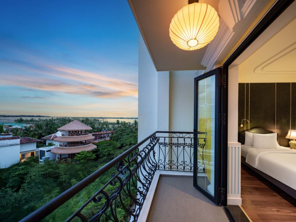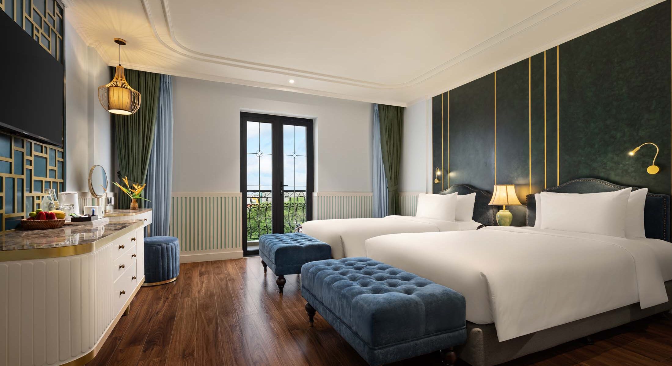 Thanh bình bên khung cảnh phố phường đặc trưng Hội An. Không gian ấm cúng với giường cỡ King hoặc hai giường đơn với phòng tắm lãng mạn với rèm kéo thanh lịch dành cho cặp đôi. Sắc xanh cổ vịt hoàng gia hòa cùng sắc thiên nhiên bên ngoài cửa sổ với ban công để bạn có thể thưởng thức không khí mỗi sớm mai yên bình nơi ốc đảo.