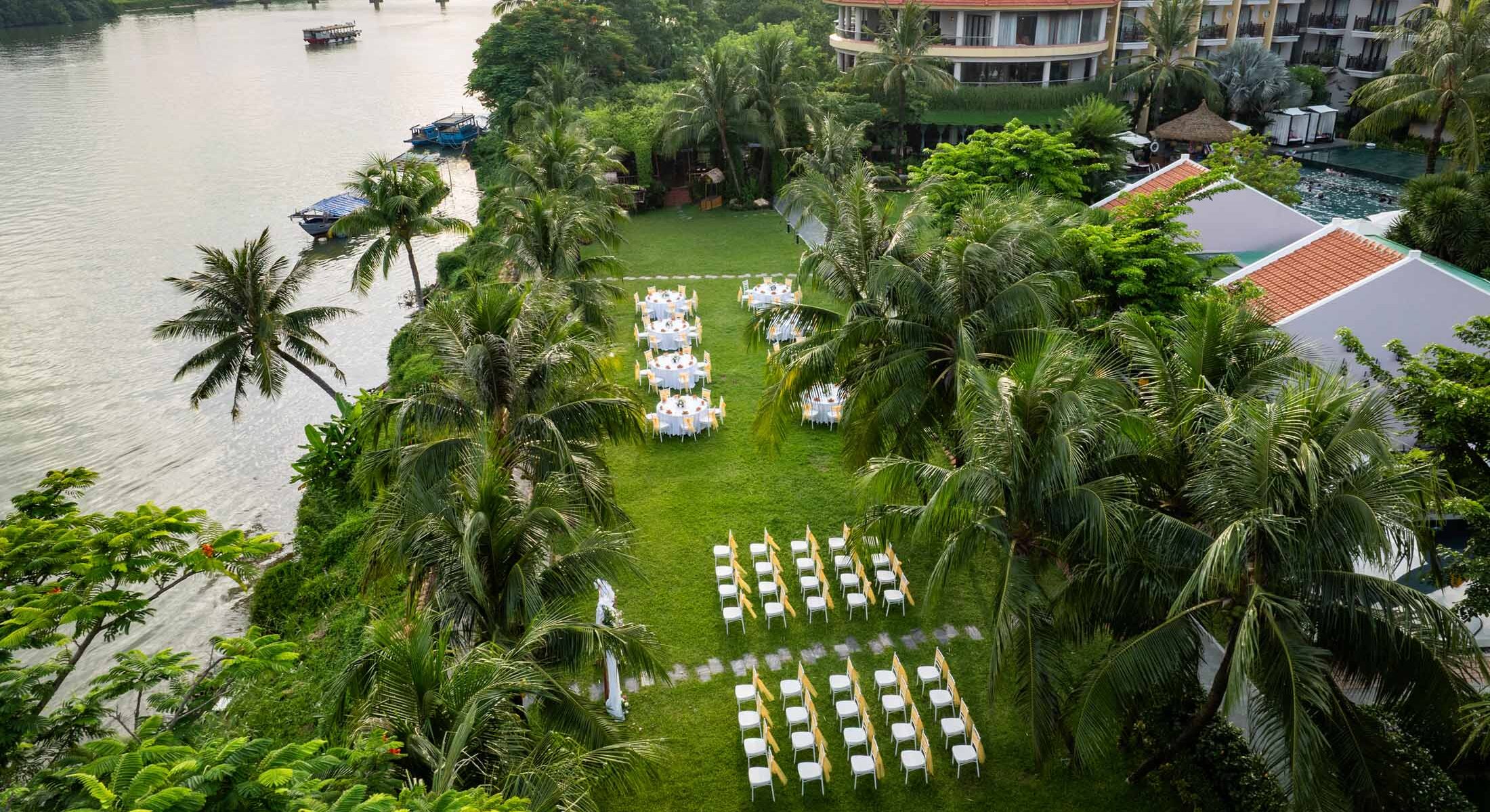 Set along the gentle Thu Bon River, Bel Marina Hoi An Resort offers an enchanting riverside setting for your dream wedding. Exchange your vows under the golden sunset, surrounded by lush tropical gardens and the timeless charm of Hoi An’s lantern-lit beauty.